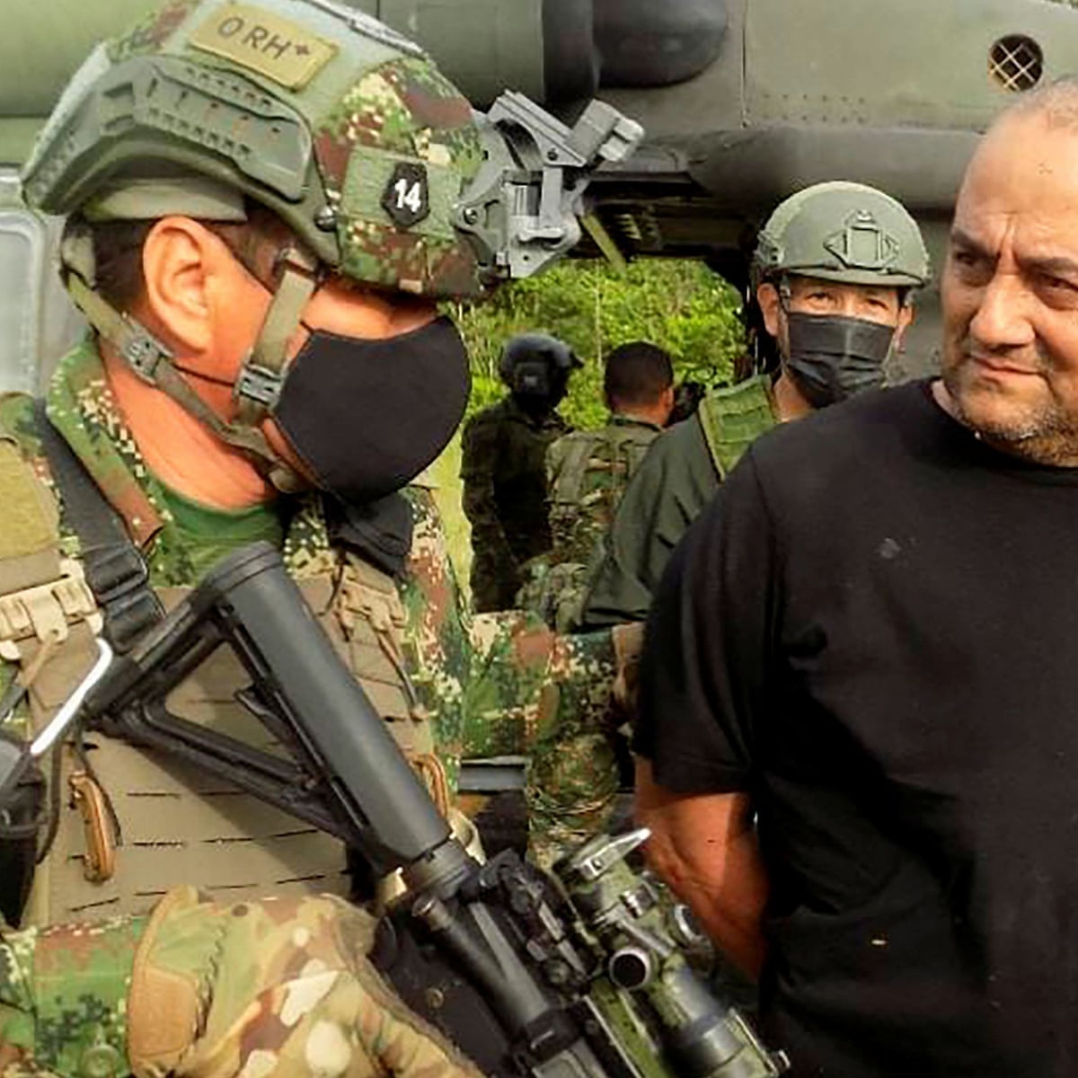 23 2021 Colombian presidential press office via AP. Colombias most-wanted drug lord Otoniel captured by armed forces. According to police Otoniel was hiding in the jungle in the Uraba region.